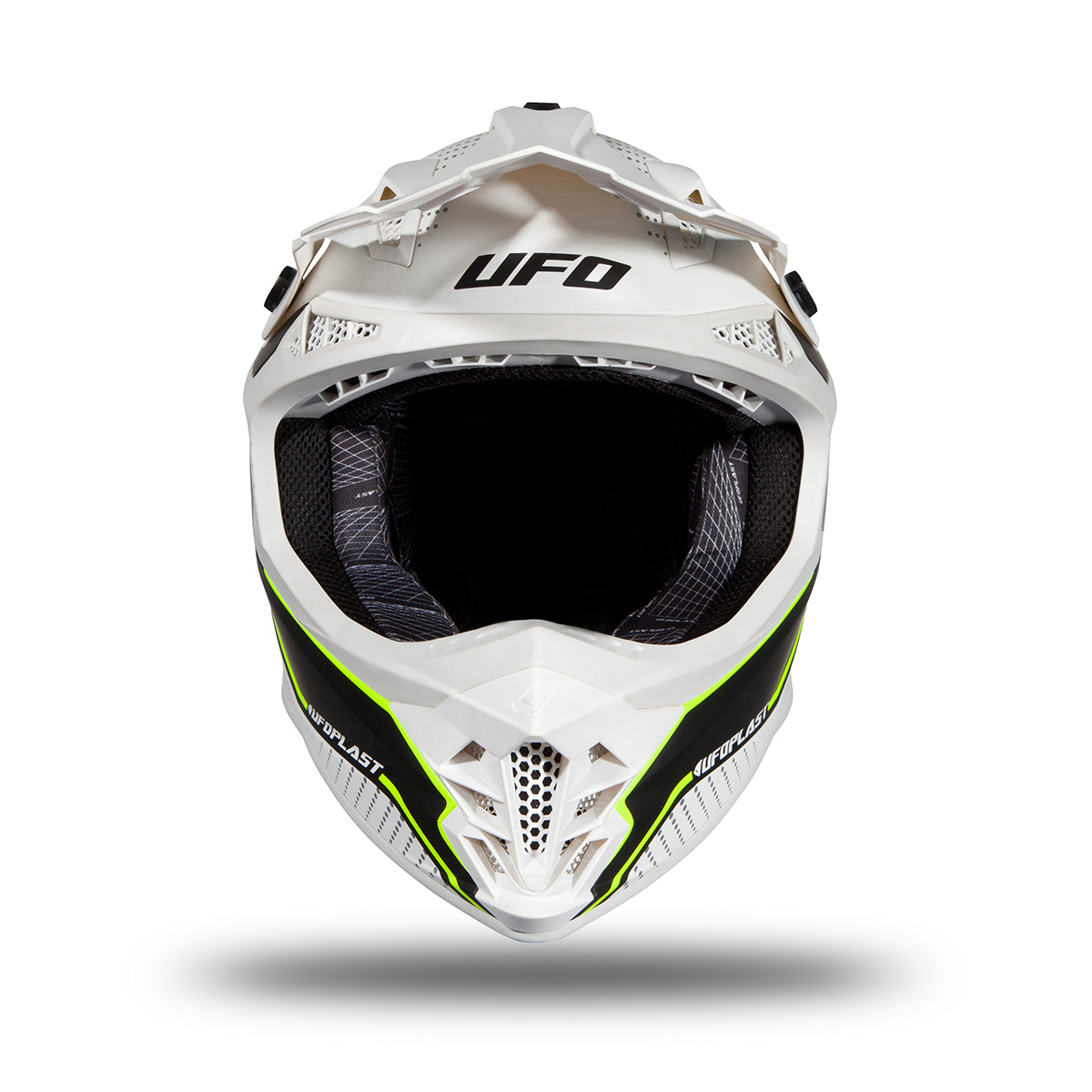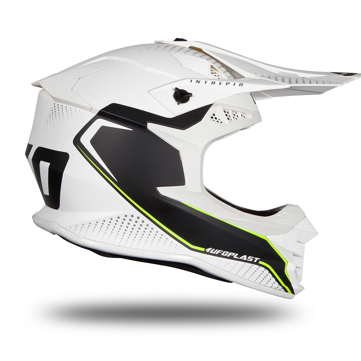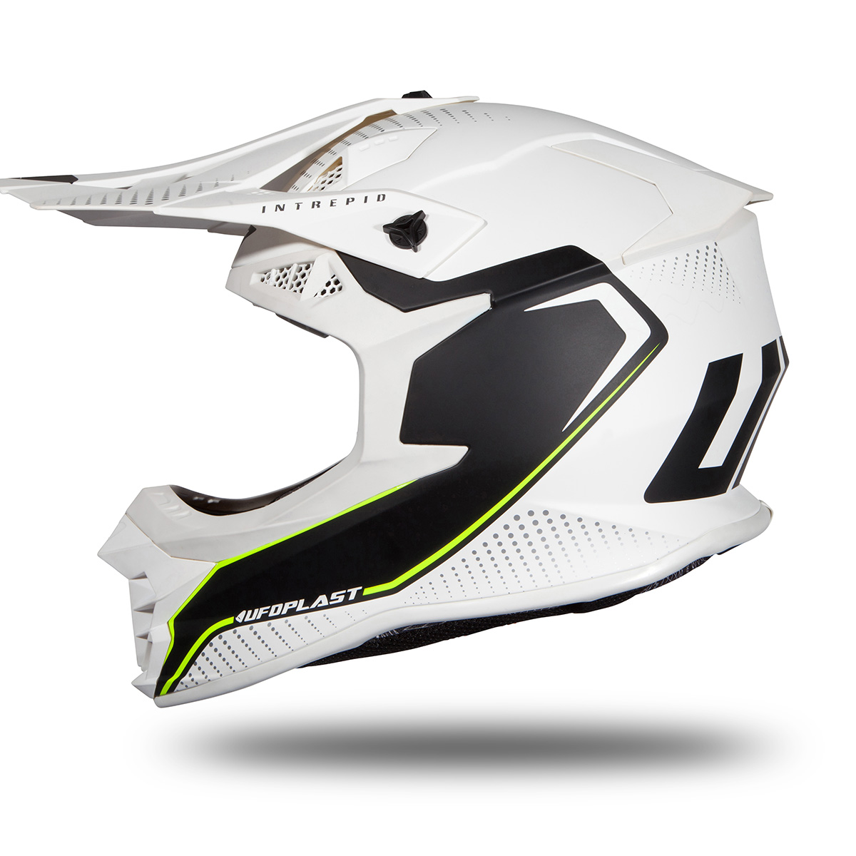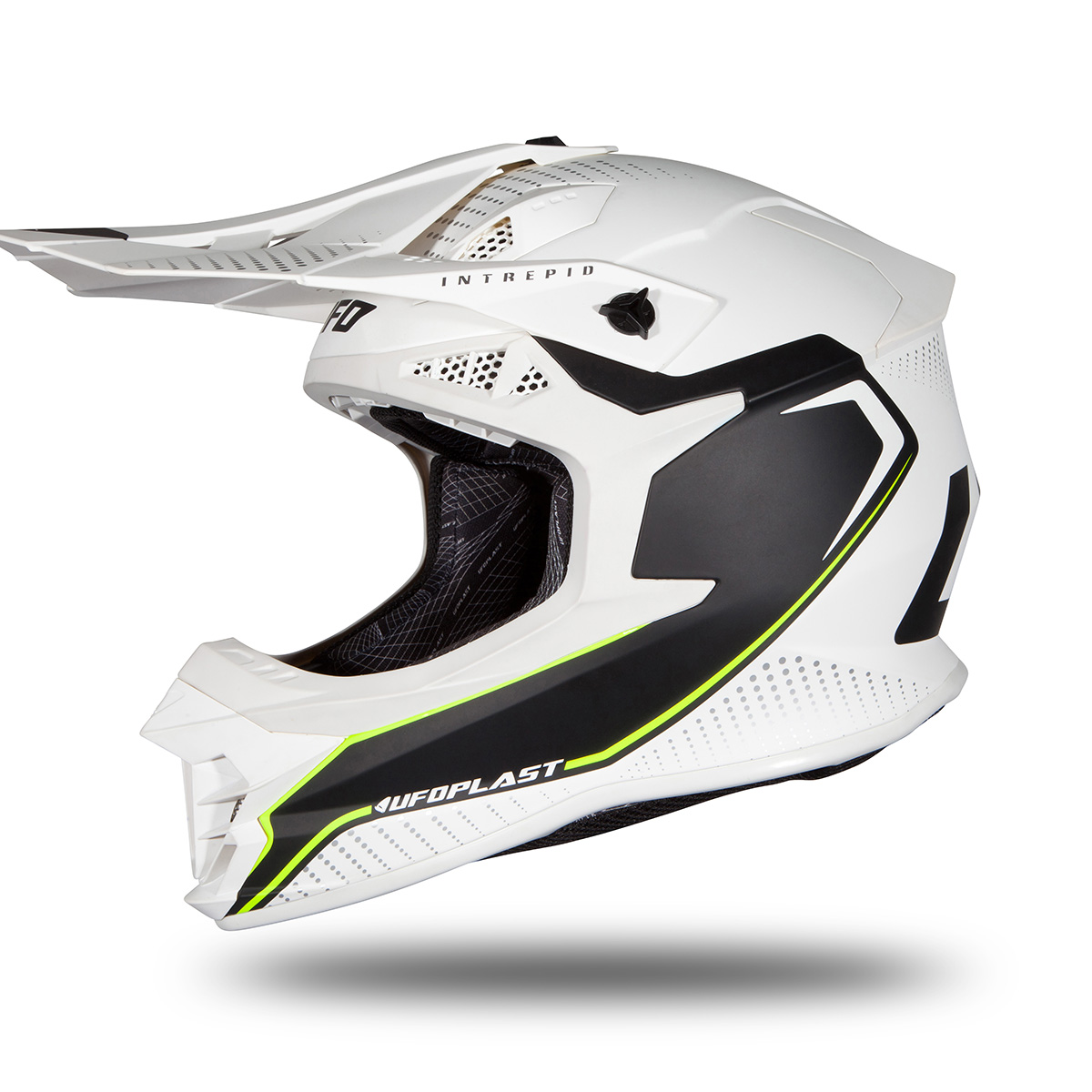 The UFO Plast INTREPID motocross helmet, designed for the most demanding riders, has excellent technical and mechanical characteristics, guaranteeing very high resistance to abrasion and shock absorption.