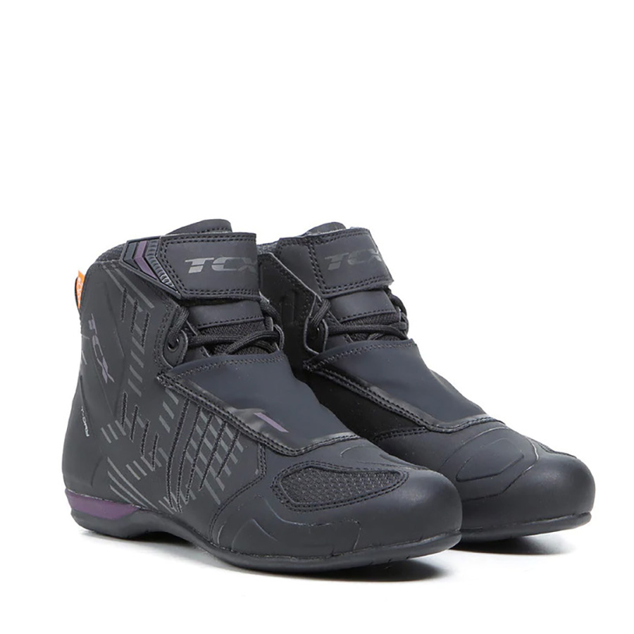 TCX R04D WP su vodootporne motociklističke cipele koje garantuju sertifikovanu zaštitu, svestranost i udobnost prikladne za dugotrajnu upotrebu. T-DRY vodootporna membrana obezbeđuje savršenu zaštitu od vode i atmosferskih uticaja, za savršeno udobna stopala u svim uslovima. Gornji deo od mikrovlakana garantuje veliku osetljivost za vožnju i precizno pristajanje. R04D WP je na pertlanje sa pokrivačem i čičak trakom za podešavanje područja vrha, za maksimalnu sigurnost, Bycast kožnim štitnikom poluge i reflektujućim elementom na zadnjem delu i menjača. R04D Ladi WP je dizajniran u skladu sa konceptom ženskog pristajanja, koji odgovara tipičnoj ergonomiji ženskog stopala i efektivno rezultira debljim đonom pozadi i suženom petom i bokom. TCX RO4D WP cipele sadrže OrthoLite uložak za dugotrajano nošenje i visoka prozračnost, Groundtrax đon je napravljen od gume otporne na habanje, osiguravajući maksimalno prianjanje, osjetljivost i udobnost prilagođenu motociklističkoj cipeli koja se može nositi ceo dan, dok je gornji dio izrađen od mrežaste tkanine sa toplom presvlakom.
