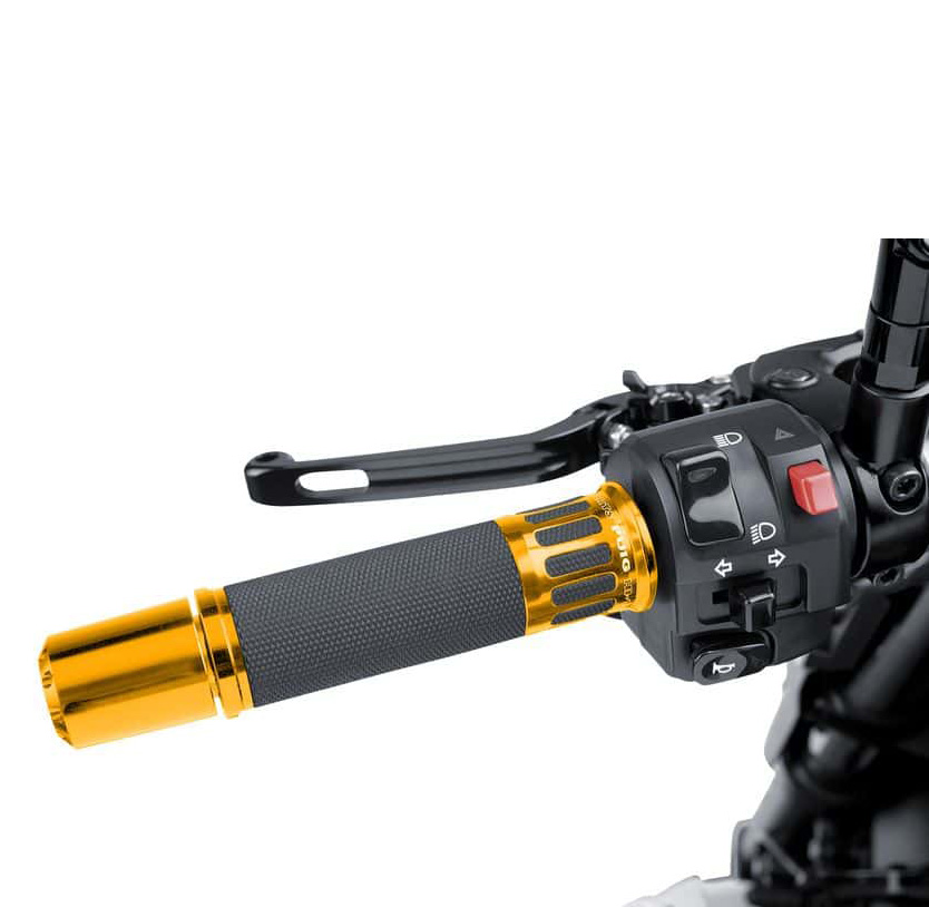It is a piece with rubber finish, very pleasant to the touch and non-slip texture, which will make us enjoy the riding of our motorcycle to the fullest. In addition, we can customize them as we wish thanks to the anodized aluminium insert.